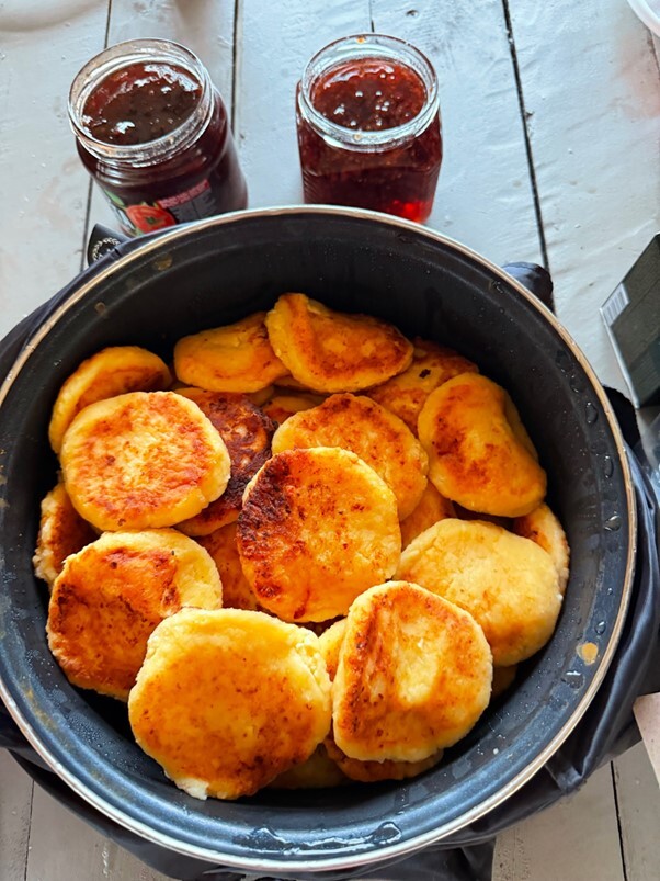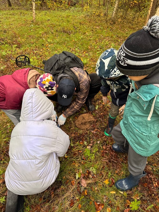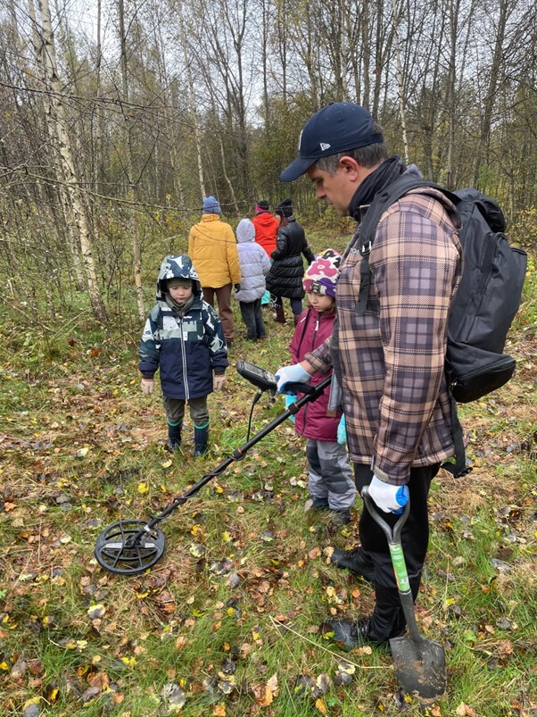 День начался с домашних сырников, приготовленных из фермерского творога, с малиновым вареньем и кофе. Подкрепившись, дружная компания пошла на прогулку по лесной тропе с металлоискателем. Папа одной из гостий привез с собой все необходимое оборудование, и с его помощью были произведены точечные раскопки — на лесных тропах удалось найти несколько бутылочных пробок 🙂 Но сам процесс… Дети были увлечены в надежде обнаружить нечто более ценное. Настоящие кладоискатели!