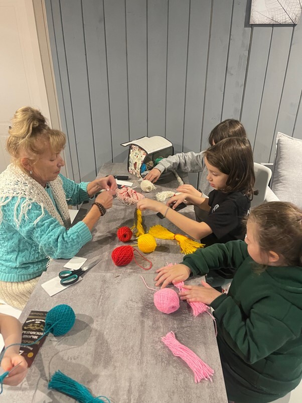 Казалось, что ближе к вечеру все были пресыщены впечатлениями! Но нет, это не конец программы. Под завершение дня ребят ждал финальный мастер-класс мастерицы Лидии Соломиной из Мышкина. Она научила вязать обереговых кукол из шерстяной пряжи — на занятие пришли не только девочки, вопреки расхожему убеждению, интерес проявили и мальчики. Плетение задействует мелкую моторику, что помогло замедлиться и успокоиться после богатого впечатлениями дня.
